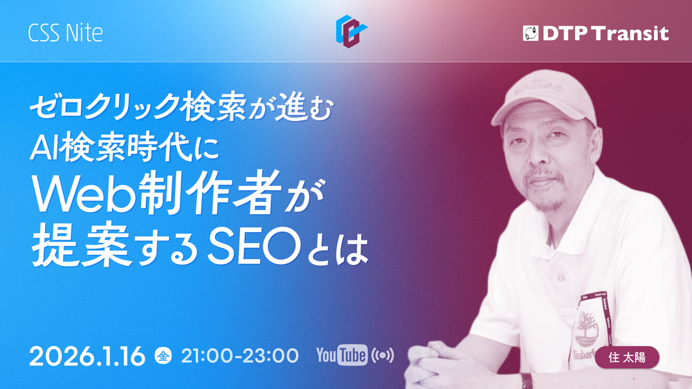 鷹野 雅弘(CeeBeeDee/CSS Nite/DTP Transit)が“聞き手”を担当し、リアルタイムでチャットでの質問などを拾っていきます。
