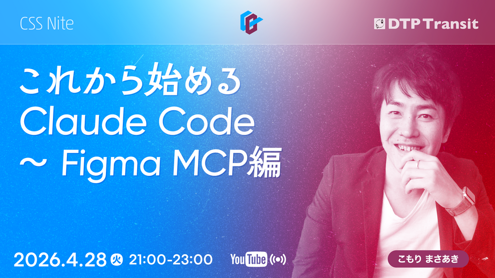 Claude Code と Figma MCP を軸に、デザインとコードを往復しながら制作を進める一連の流れを、こもりまさあきさんに実践的に解説いただきます。